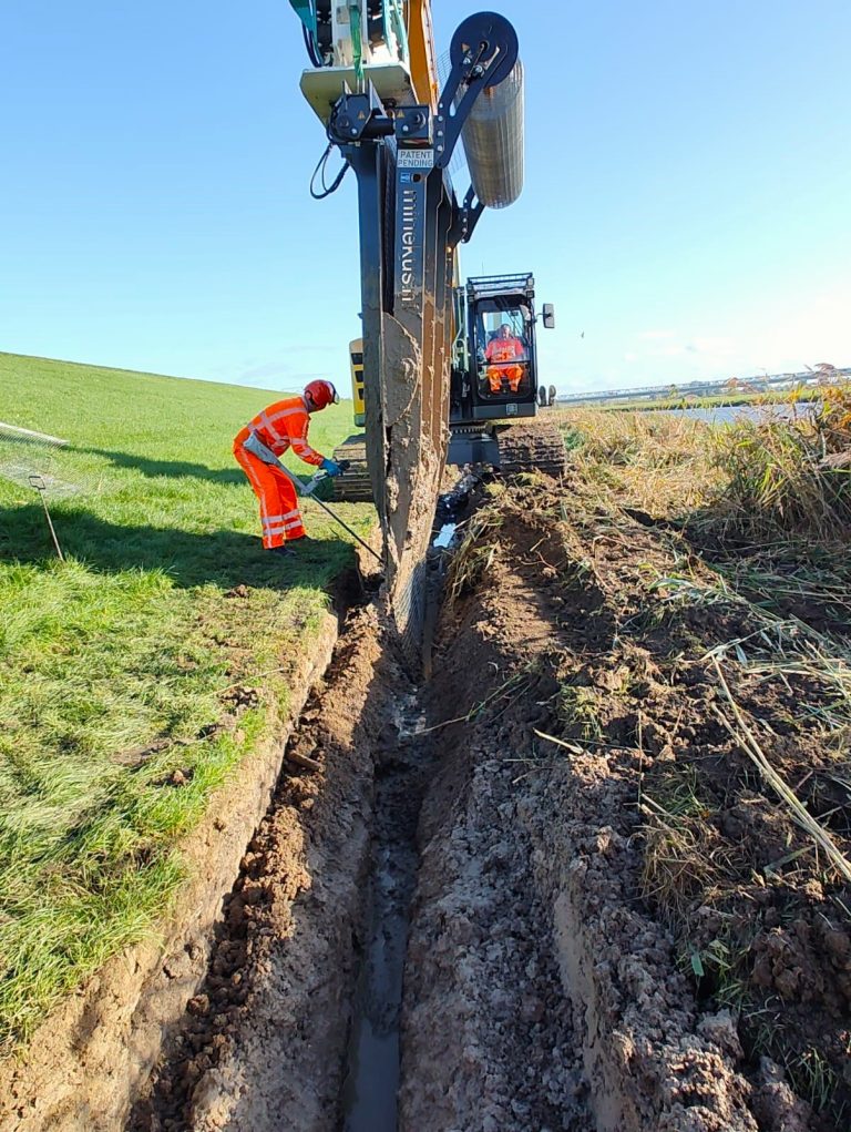 Groot voordeel van onze methode is dat de verdichting onderin de dijk intact blijft, hetgeen aanvullend grondverzet en opnieuw verdichten overbodig maakt.